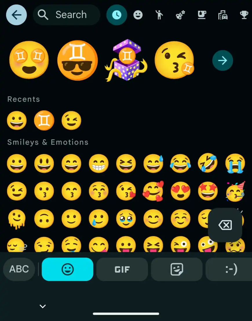 Thay đổi đáng chú ý đầu tiên là việc loại bỏ giao diện "Tất cả", vốn trước đây dùng để hiển thị các emoji sử dụng gần đây, các sáng tạo từ Emoji Kitchen và GIF.